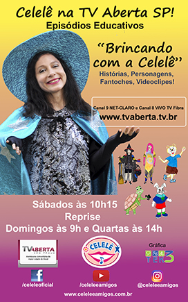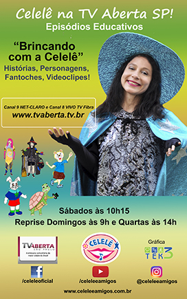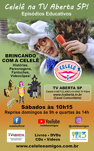 "Celelê-Clipe" na TV Aberta de São Paulo, canal 09 Net e 186 Vivo - Domingos às 9h www.tvaberta.tv.br