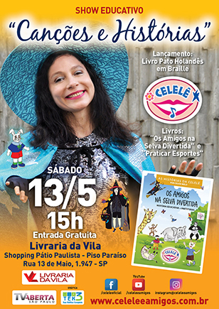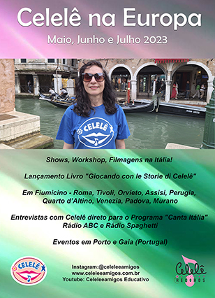Convide você também a artista Celelê para se apresentar na sua Escola, no Teatro, no Clube, no Shopping, na sua Empresa ou na Praça da sua cidade!